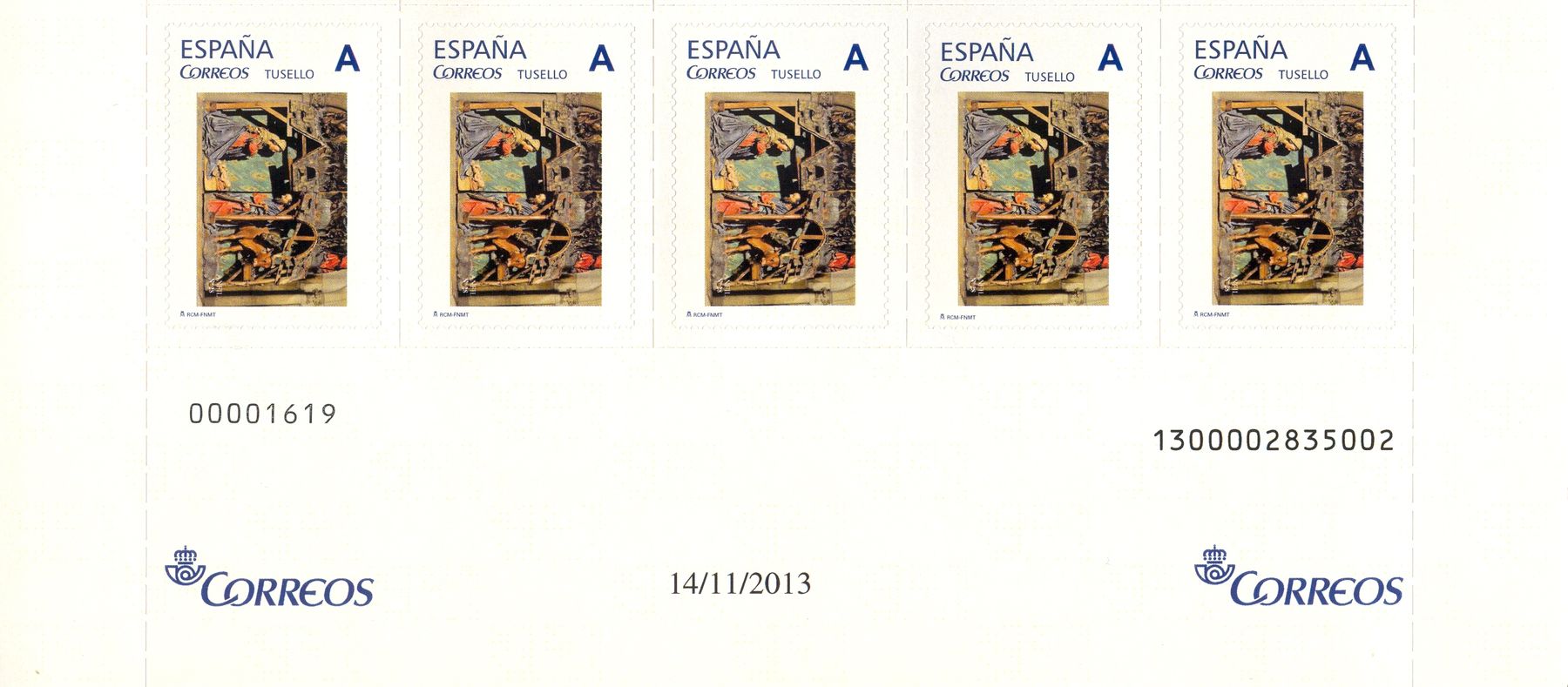 Reproduzco el sello personalizado emitido, junto con la cabecera del pliego y la zona inferior del mismo con los números de registro.