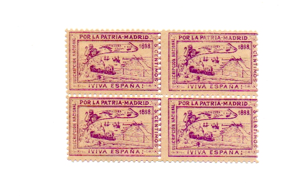 Viñetas patiótica de 1898, en bloque de 4, de las Colonias de Ultramar. Buen estado