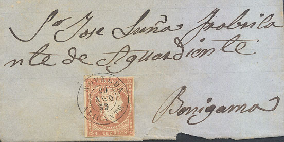 ALICANTE (9) sin punto (Tipo 1858) .....(Pag.2 Frente Carta) (Pag.2 Carta Ed.81 y Carta Ed.96)