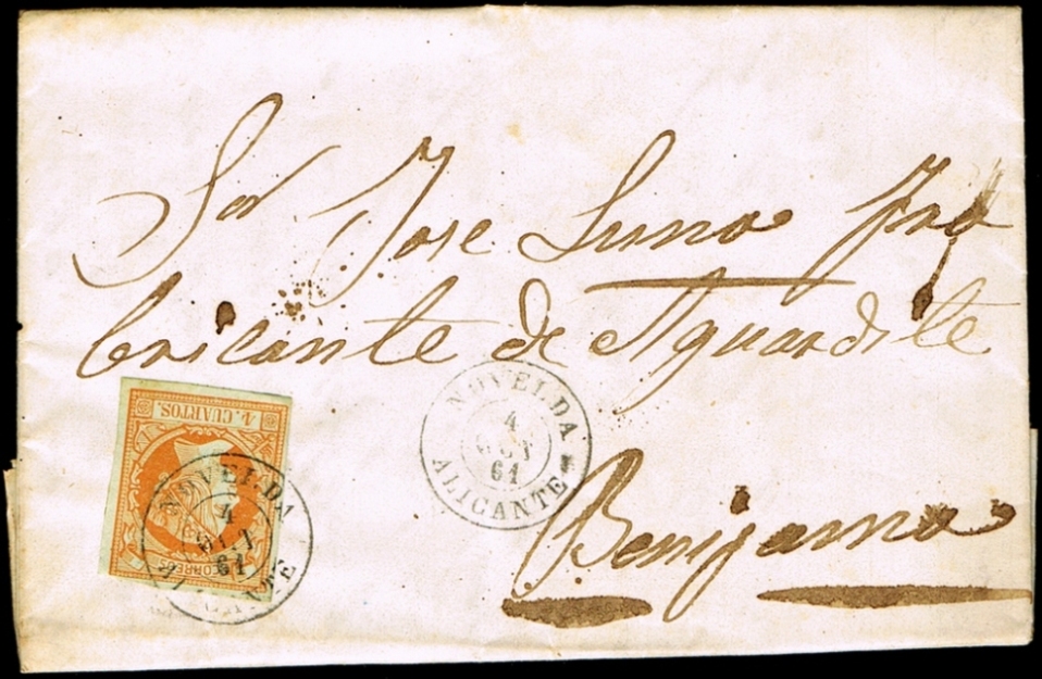 ORIHUELA Tipo 1854 en NEGRO .....(Pag.3 Carta Ed.48, Ed.48 y Ed.48) (Pag.3 Trio Ed.48 y Ed.52)