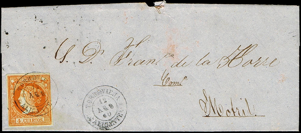 TORREVIEJA Tipo 1854 en AZUL .....(Pag.3 Carta Ed.48 y Frag. SN)