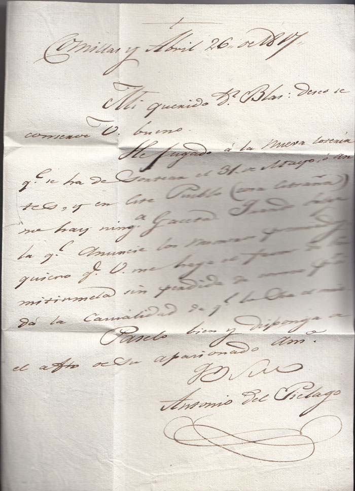 Esta carta es de Llanes (Asturias) de 1816. Tizón la da de 1801 a 1814.