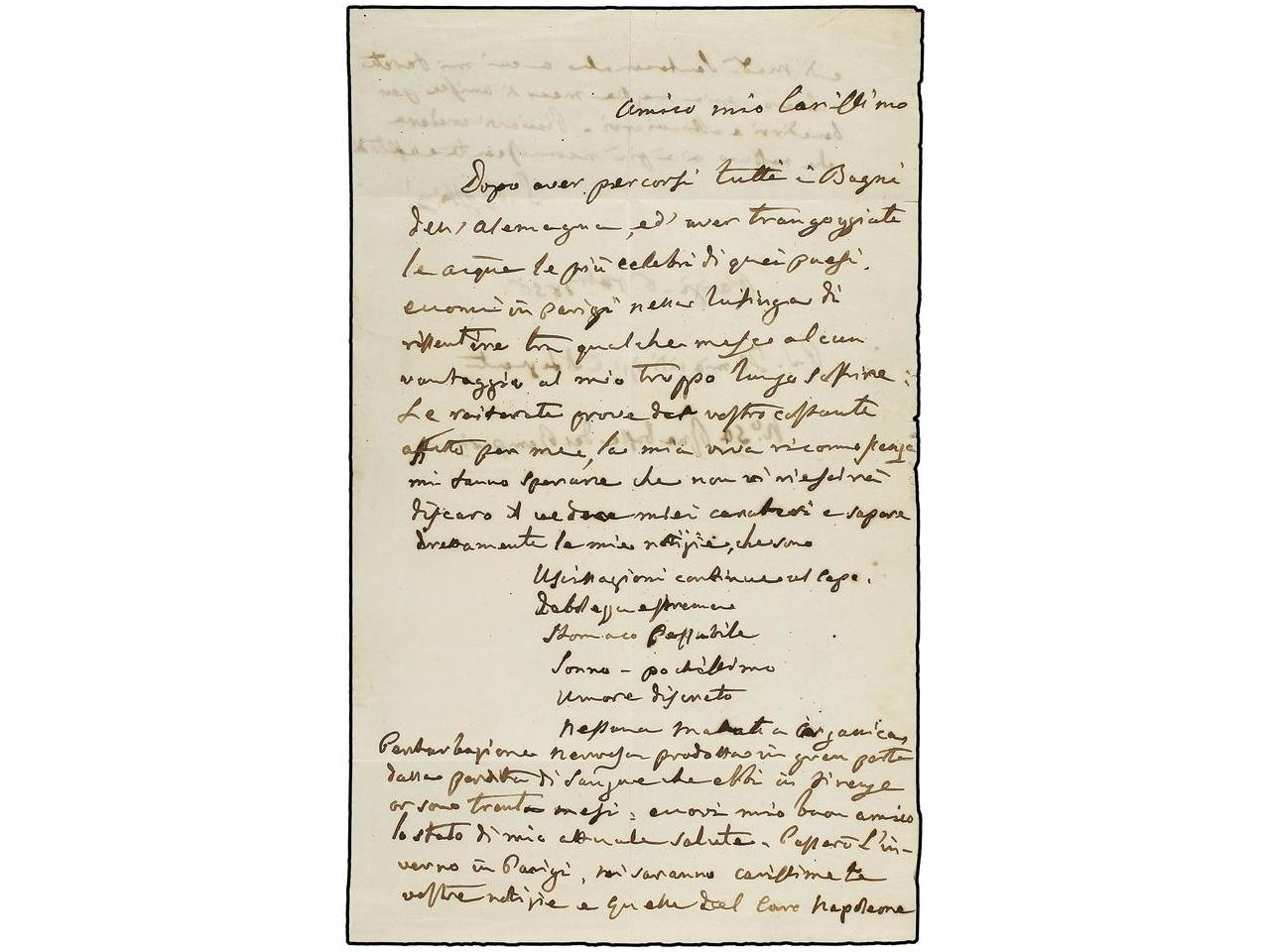 sus problemas de salud durante su estancia en París (descripción del subastador).