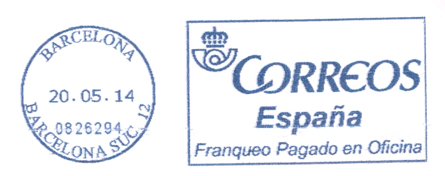 FPO. AF-107. Barcelona. Barcelona Suc. 12. 0826294. Azul. 2014-05-20.jpg