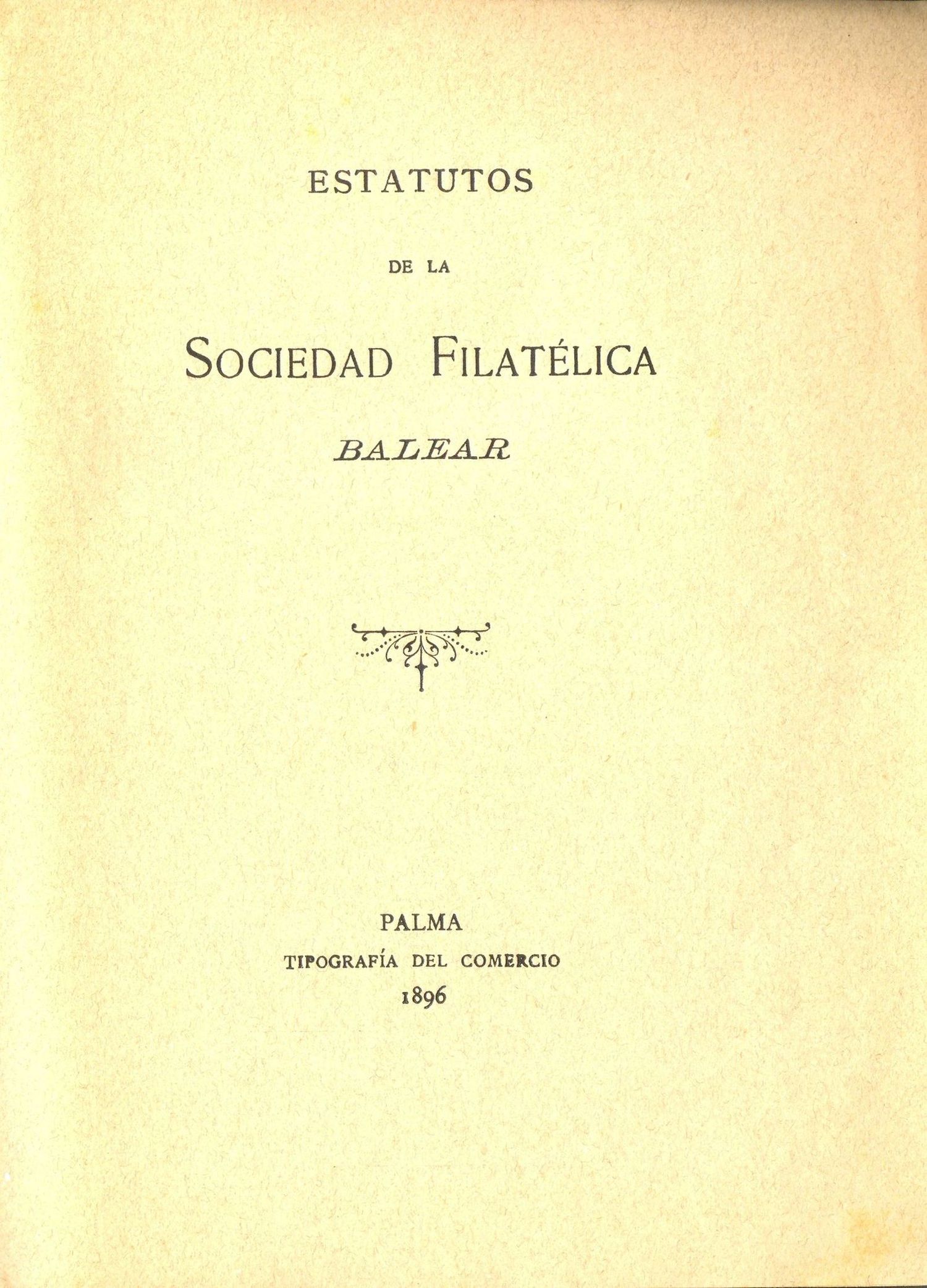 ESTATUTOS DE LA SOCIEDAD FILATÉLICA BALEAR, No indica, 1896.