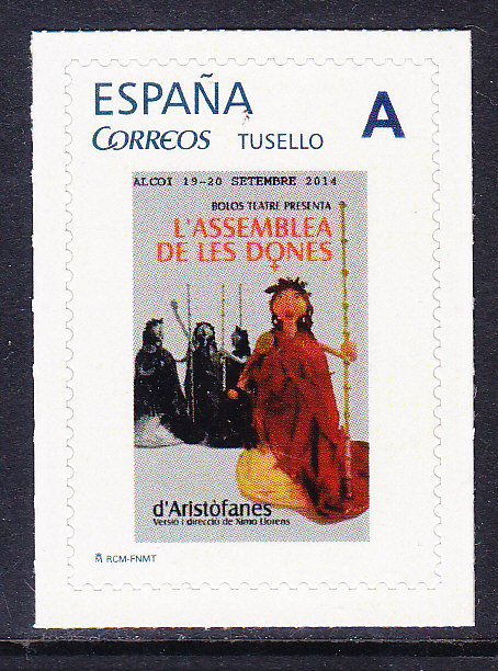 Con motivo de la representación teatral de la obra de Aristófanes "La Asamblea de las Mujeres", por la compañia Bolos Teatre de Alcoy, celebrada en septiembre, se solicitó este sello personalizado, con la representación del cartel del evento.