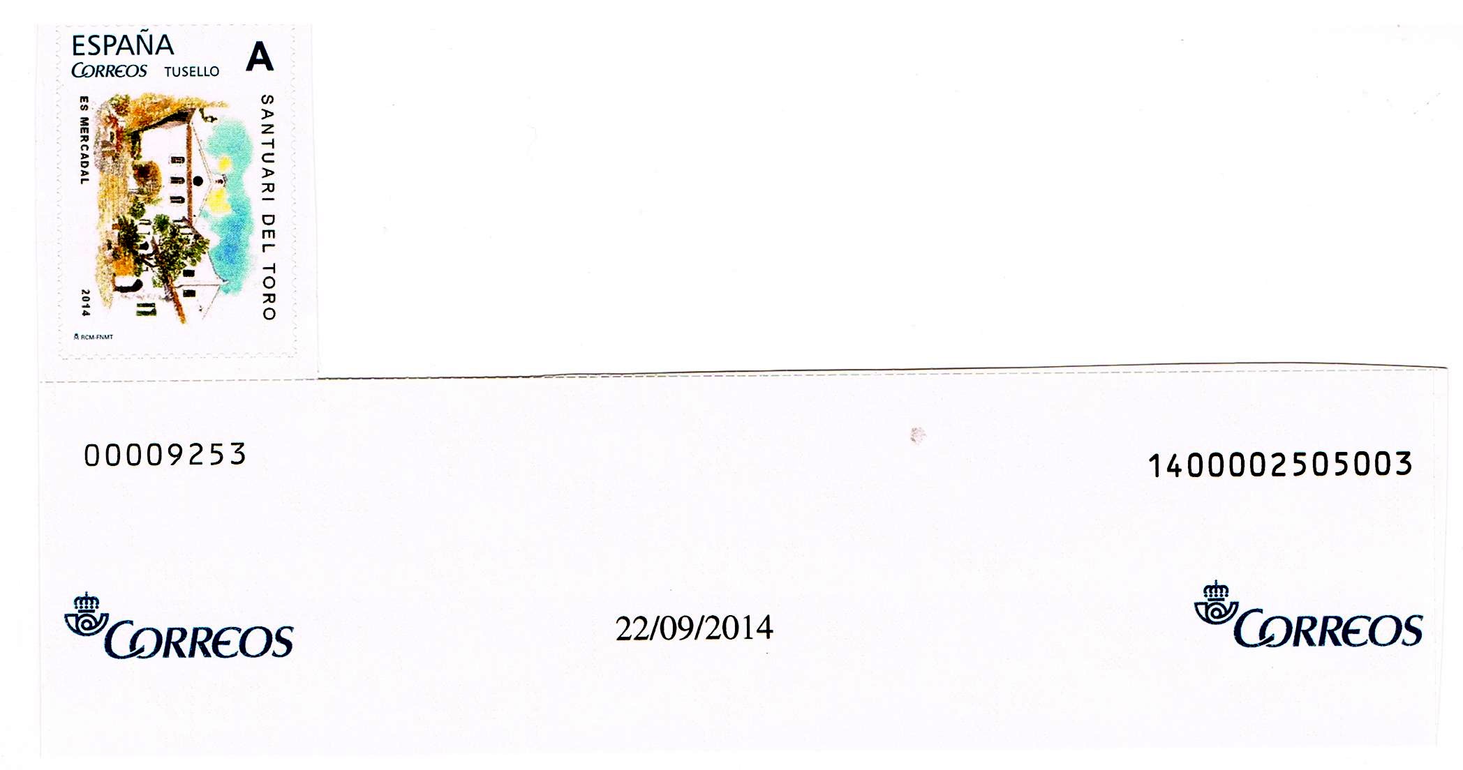 Reproduzco el sello personalizado, el sello con el matasellos y el sobre ilustrado que estaba a la venta.