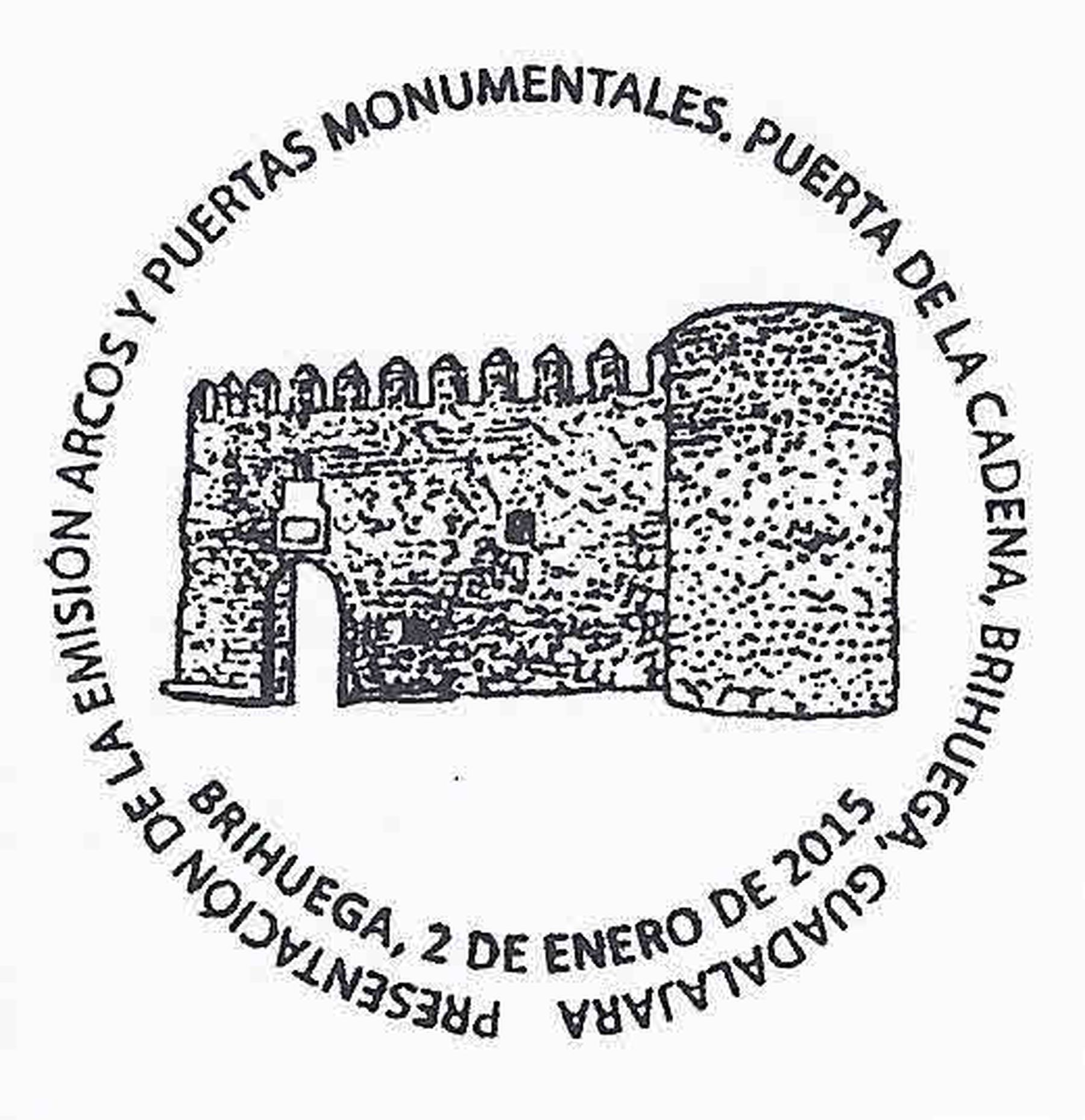 El pasado día 2 de enero de 2015 se ha emitido una serie de sellos de correo autoadhesivos denominada «Arcos y Puertas Monumentales». La emisión consta de cuatro sellos, presentados en formato carné de ocho sellos (dos de cada motivo) y tarifa A. En ellos se reproducen imágenes de la Puerta de la Luna. Córdoba; Puerta de la Cadena. Brihuega. Guadalajara; Puerta de Santa María. Hondarribia. Gipuzkoa y Portal de Sant Pere. Peñíscola. Castellón.