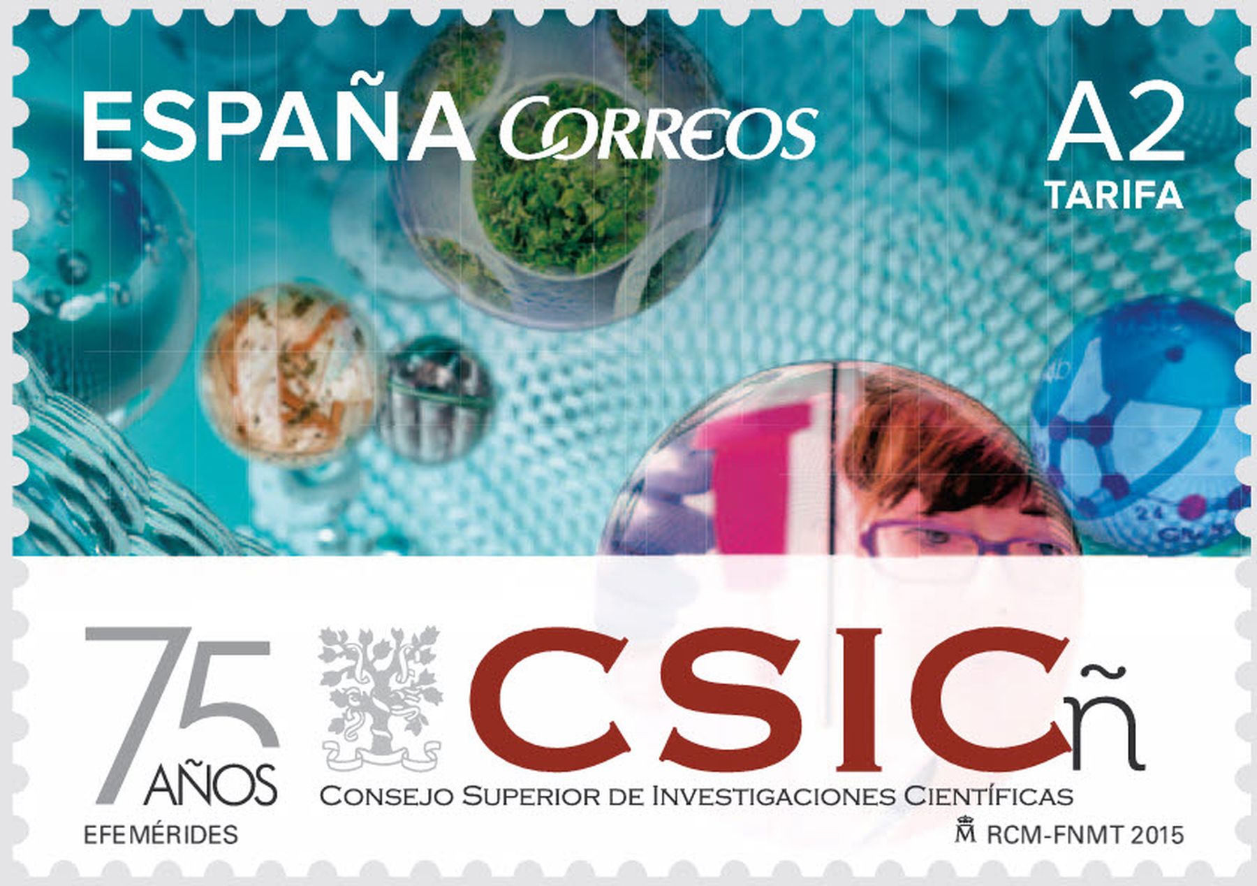Dentro de la serie denominada «Efemérides», el pasado día 5 de enero de 2015, se ha emitido un sello de correo autoadhesivo conmemorativo del «75 Aniversario del Consejo Superior de Investigaciones Científicas CSIC», la mayor institución pública dedicada a la investigación en España y la tercera de Europa.