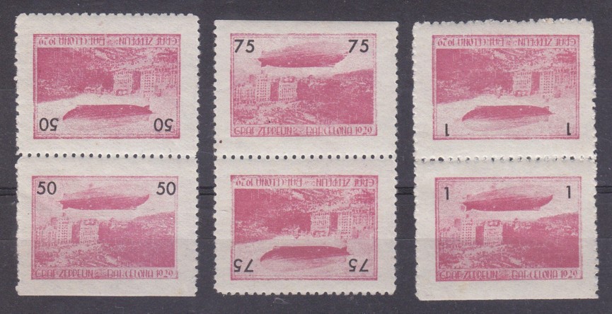 El viaje del Graf Zepelin a Barcelona para la Exposición de 1929 estaba programado pero no llegó a efectuarse. Estas viñetas en tête beche existen igualmente con los mismos valores en sobrecarga, además de en rosa en color azul i en verde.