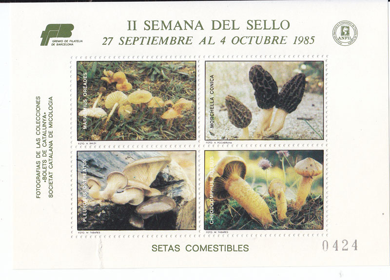 No se si esta viñeta de setas del gremio de filatelia de Barcelona puede serviros para la catalogación...