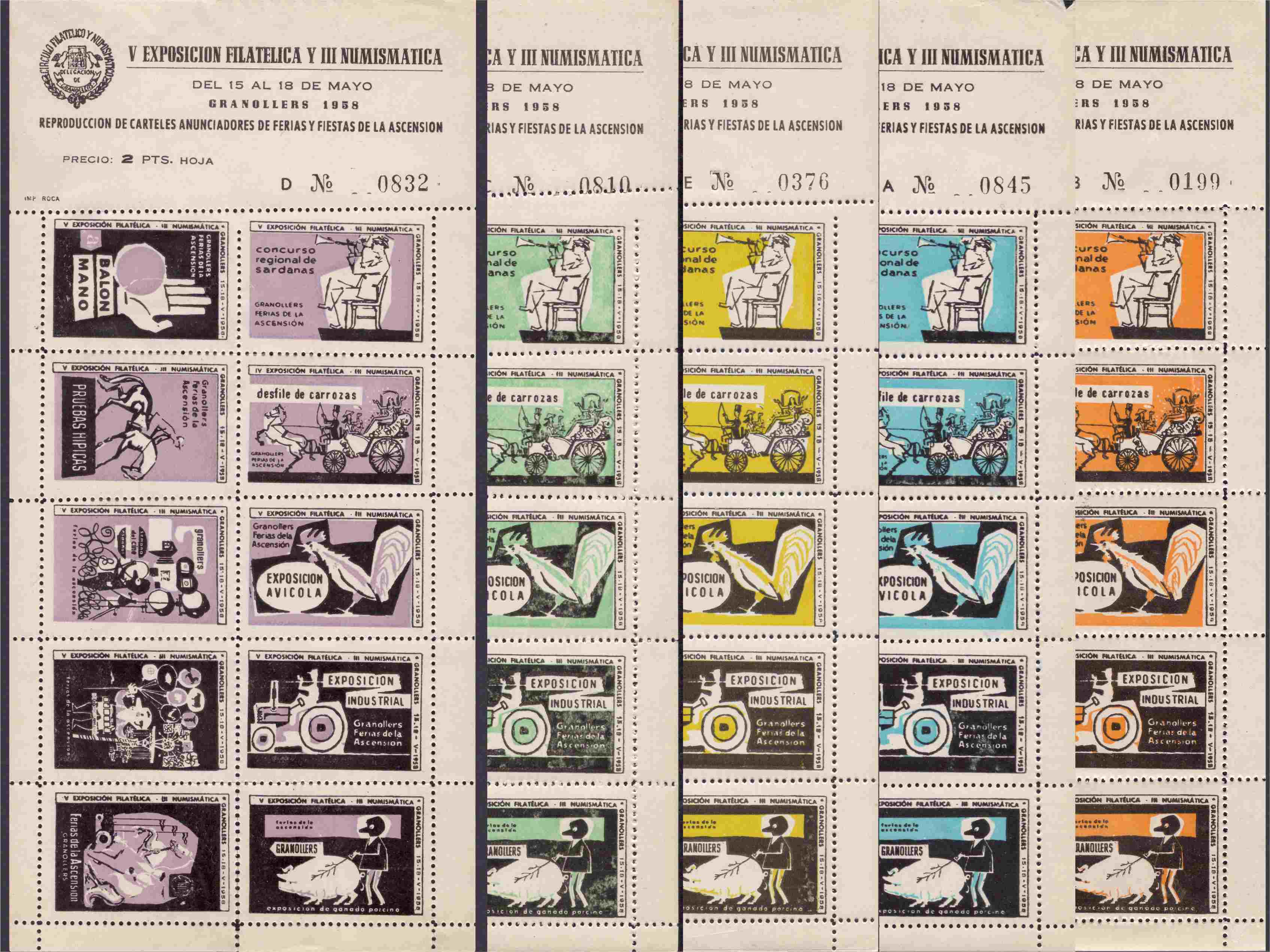 Efectivamente, estas viñetas para la Primera Exposición de 1954 fueron realizadas en la Imprenta Roca de Granollers en cinco colores.
