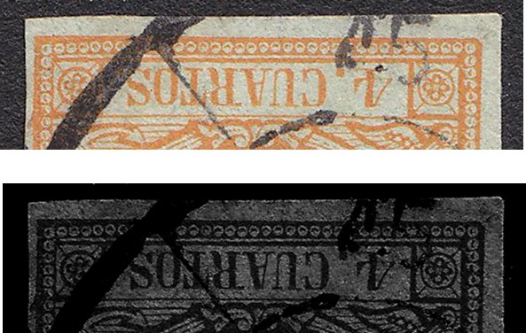Subo imagen comparativa y como puede observarse una de las cifras parece un 45, en el mismo sello y en el mismo lugar. O.K.