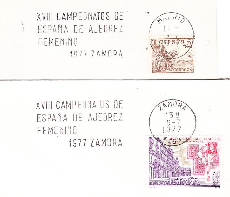 Un rodillo que merece un extenso comentario, es el correspondiente al año 1977 con motivo de los XVII CAMPEONATOS DE ESPAÑA DE AJEDREZ FEMENINO. 1977 ZAMORA, que reproduzco en la imagen.
