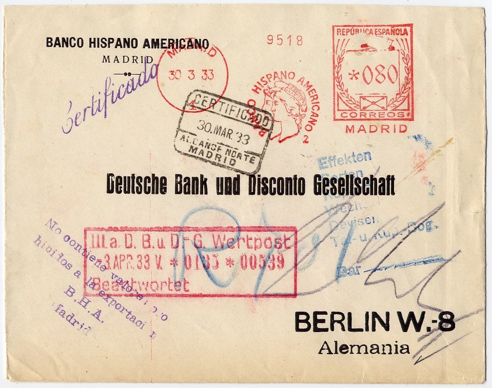 Un CERTIFICADO / ALCANCE NORTE / MADRID de fecha 30 marzo 1933 (y mejor estampado)
