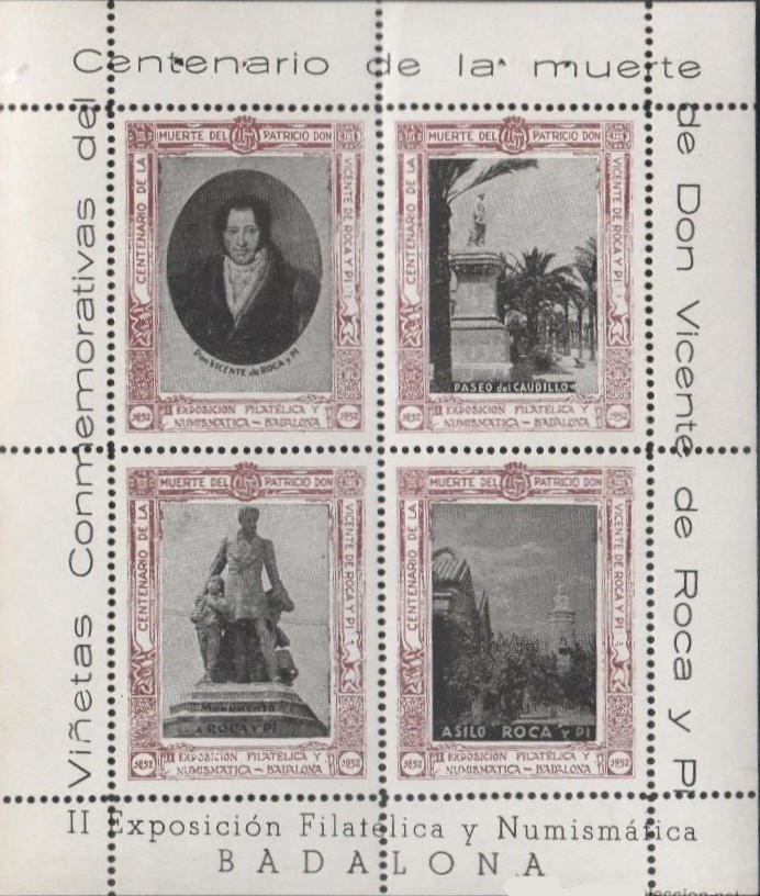 las hojitas del Centenario de Roca i Pi de Badalona existen dentadas i sin dentar en siete colores, además de en verde y castaño, en rojo, rosa, amarillo, celeste y lila.
