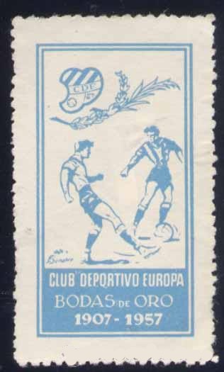 Hoy pongo esta viñeta, que pertenece al barrio de GRACIA (Barcelona). Conmemorativa del Club Deportivo Europa por sus bodas de ORO (1907-1957)