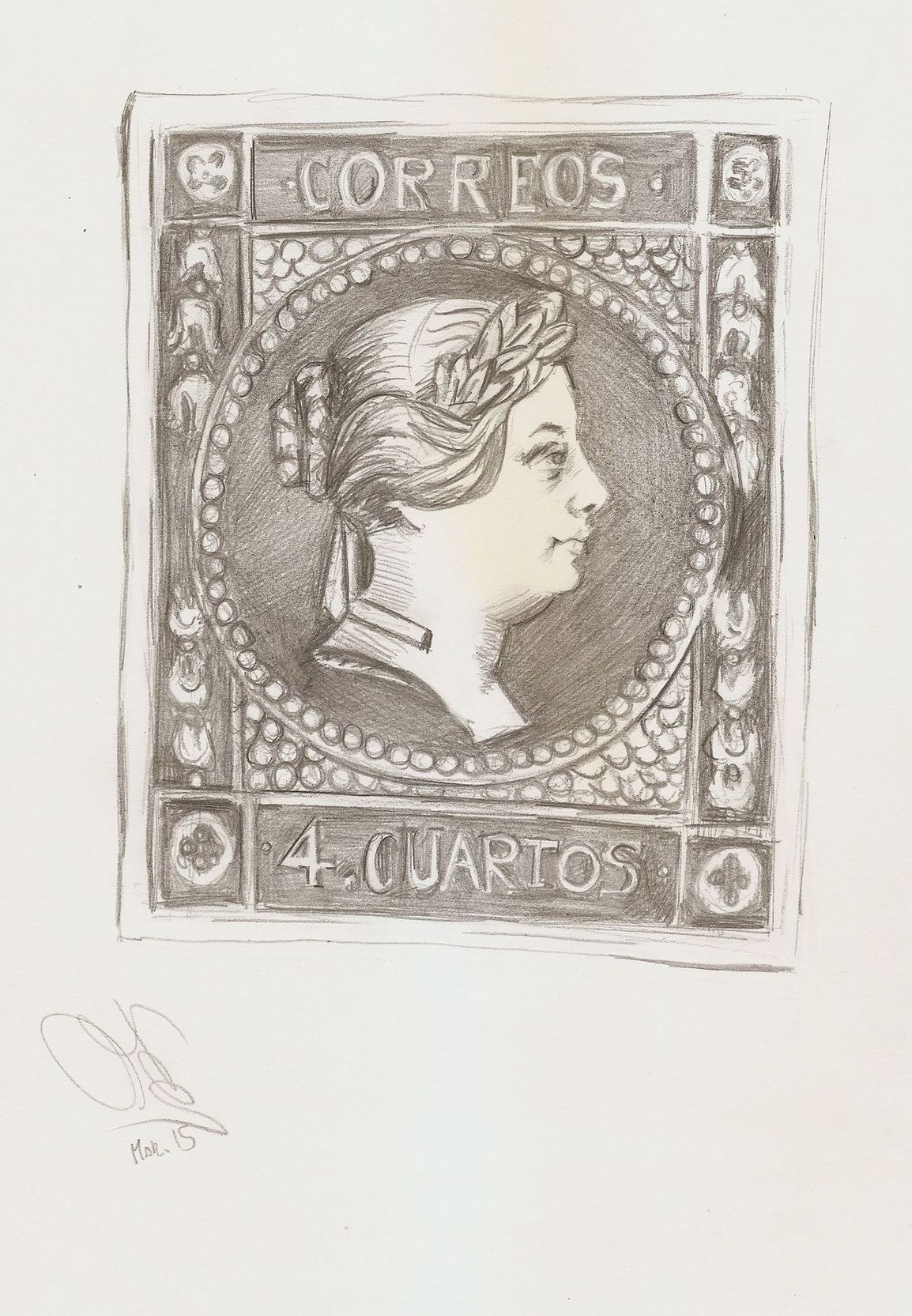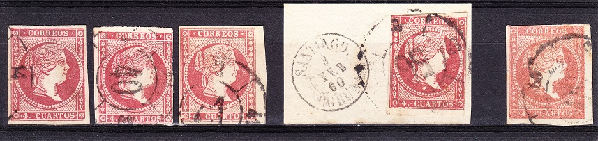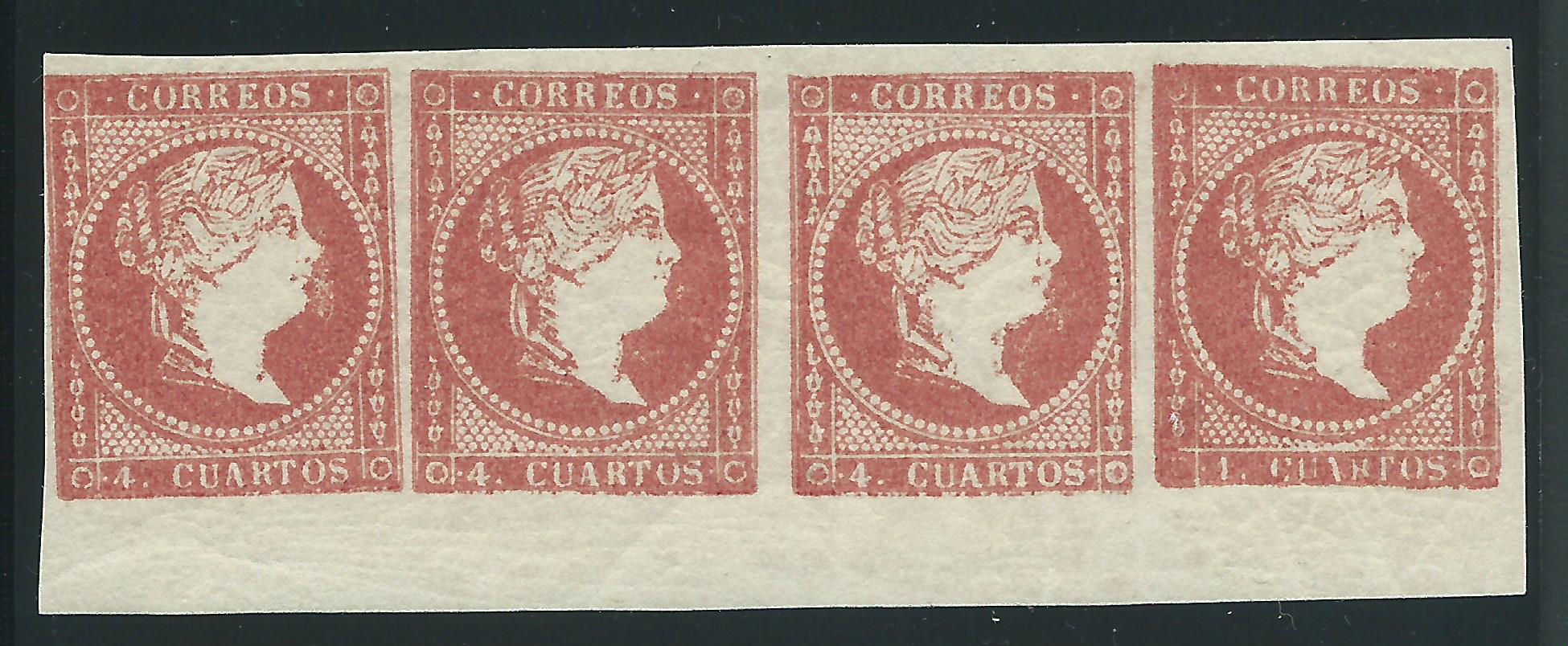 Yo tengo una tira de 4 con esta composicion aunque de una tirada tardia, con los clises mucho mas desgastados. Probablemente fuera impresa poco antes de lavar los clises para montar el tipo IV/V. En el caso de la tira que tengo, el sello de tipo I esta en la fila inferior, borde de hoja. El tuyo tambien es asi?