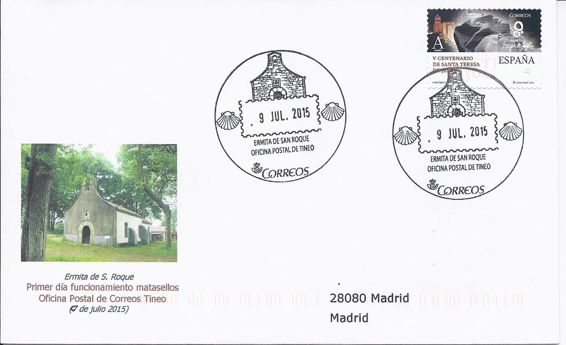 La decimacuarta de ellas (14/2015) hace referencia al matasellos turístico que, dedicado a la Ermita de San Roque, se ha puesto en funcionamiento en la Oficina Postal de Tineo.