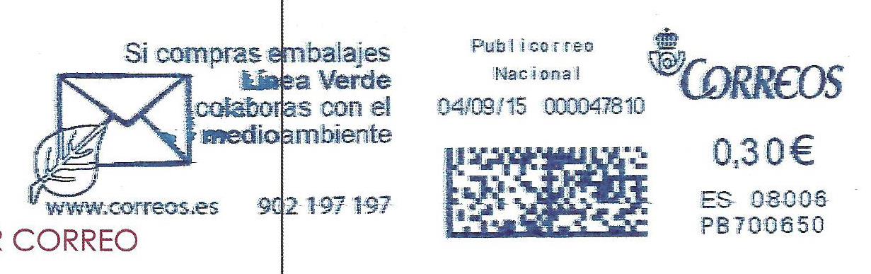 PB 700650 / Publicorreo Nacional / ES 08006 / 04/ 09/ 15.