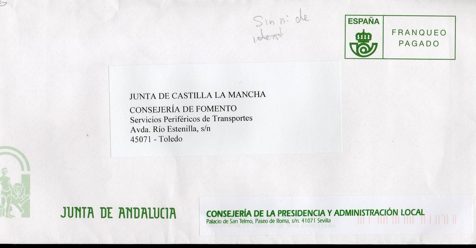 FP de la Consejeria de la Presidencia y Administracion Local de la Junta de Andalucia. Confeccionado el cajetin sin nº de autorizacion