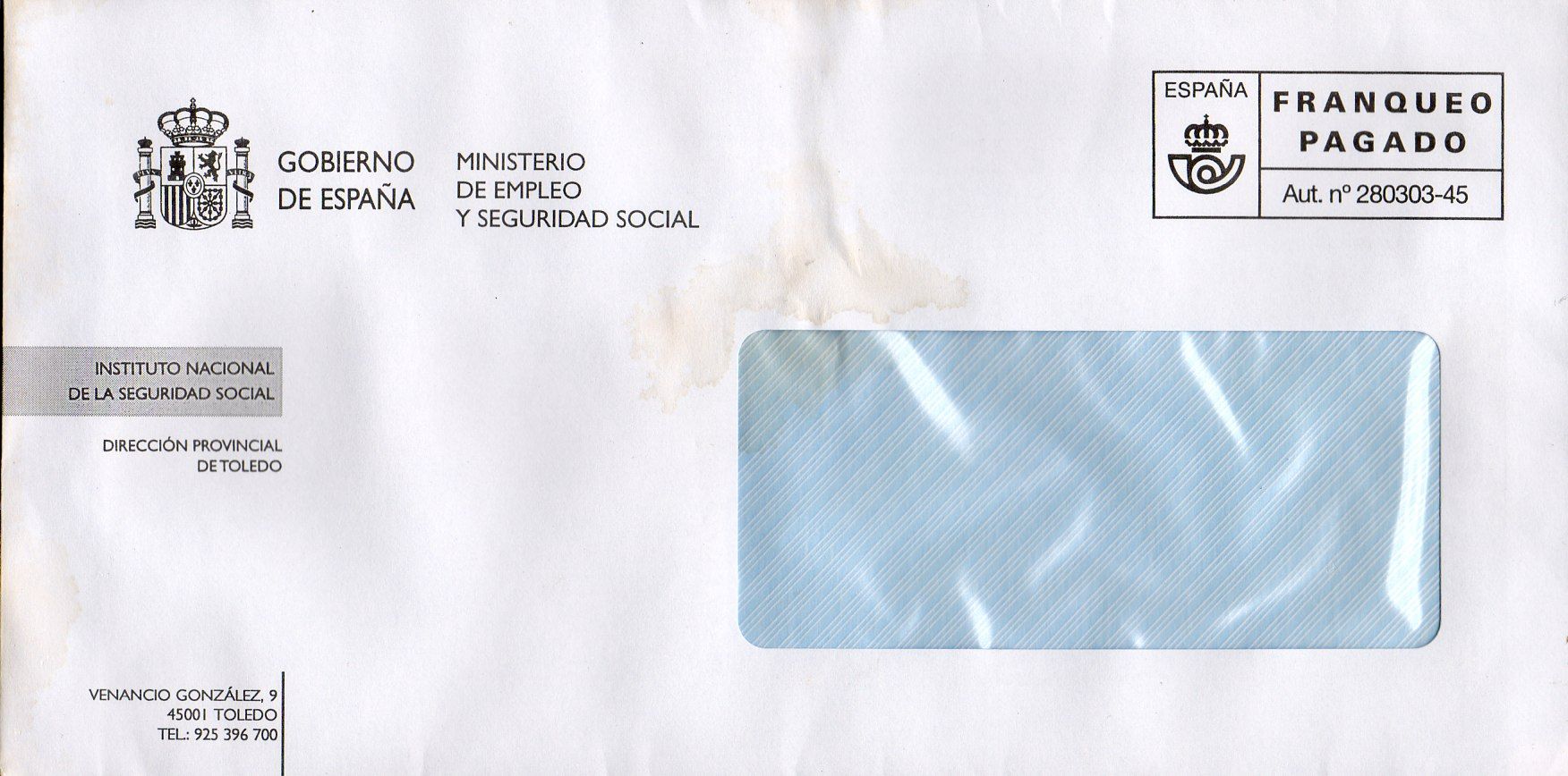 Este FOP es dela Subdireccion General de Penas y Medidas Alternativas(Ministerio de Interior). La marca de la izquierda, es una franquicia del Centro Penitenciario de Ocaña?. El cajetin tiene algun defecto de impresion? Es una variedad? Tiene que ir al sastre...