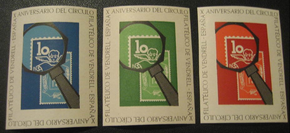 Unas viñetas dentadas y sin dentar del 10 aniversario del Circulo Filatelico de Vendrell