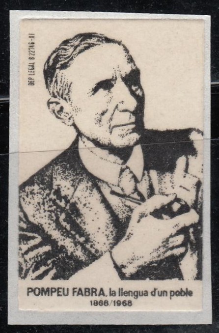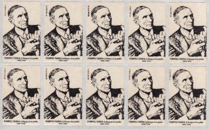 Una hojita de viñetas autoadhesivas de POMPEU FABRA, realizadas en 1968, con motivo de su centenario....aunque ignoro la población emisora, debe de ser Barcelona