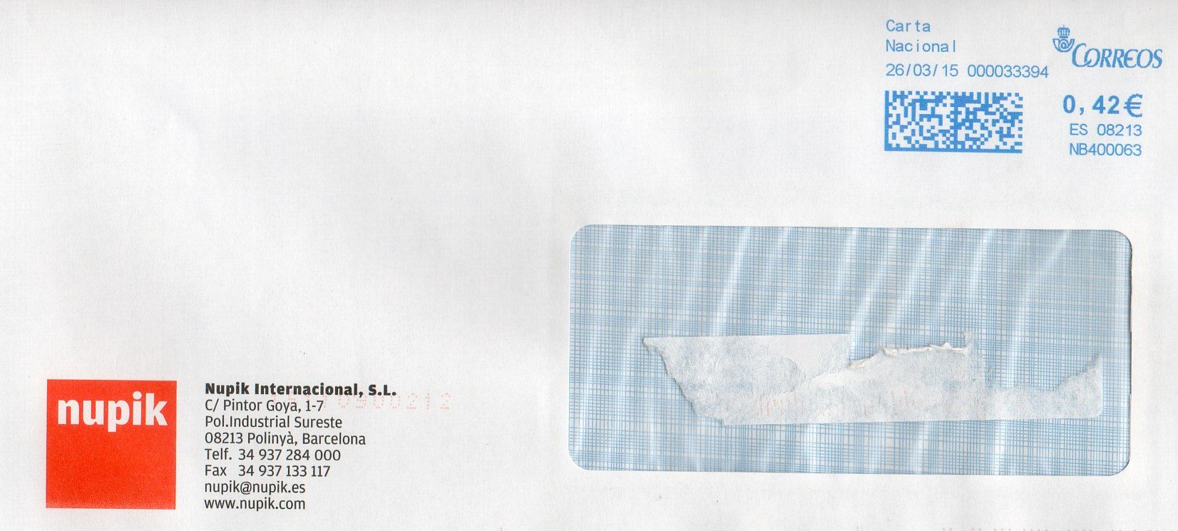 Pues, señores, creo que Alfareva lleva razón. De la empresa Infrico recibo bastante correspondencia y siempre ha llegado con FPO, y, de pronto, me ha llegado con la NB400240. Ayer no quise entrar de nuevo por la tarde porque no sabía si habian comprado una franqueadora (aunque me parecía demasiada correspondencia para ésta empresa al ver el contador) ó era de correos. Pero hoy salimos de dudas. He recibido la misma marca de otra empresa distinta.