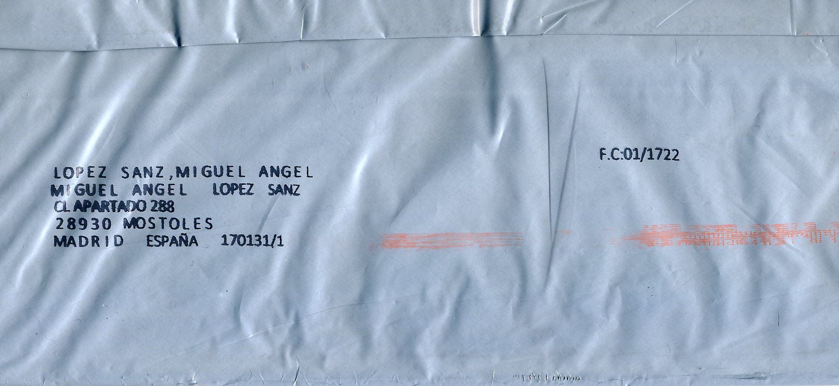 Muestro su anverso, un detalle del mismo donde figura la expresión de Franqueo Concertado (F.C.), su reverso y un detalle del mismo donde figura el remitente (sin dirección) y la expresión "Envase autorizado DGCT 19/9/91.