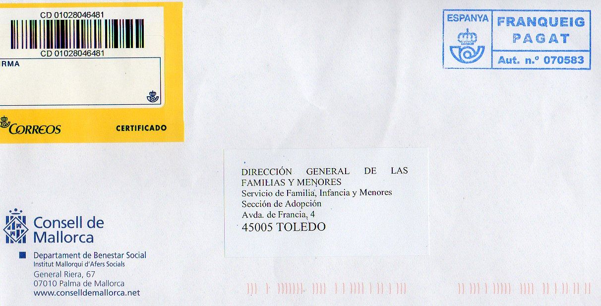 Este es del Consell dÉivissa. Aut nº 070583/43, no catalogado. y a continuación muestro este Franqueig Pagat de las IIIes Balears: