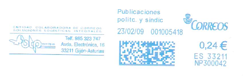 Creo (y es mucho creer) que no está catalogada. NB400256 Tipografía pequeña. La empresa que usa esa maquina franqueadora es MYCSA. He metido la pata :?: