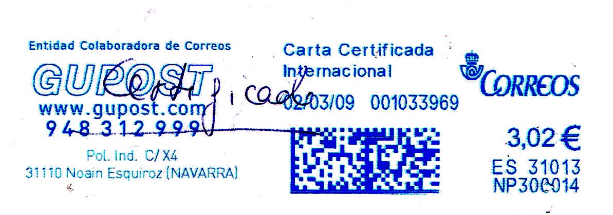 Carta certificada internacional.Sobre las siglas que tienes en blanco,GE significa Gestión de Entrega