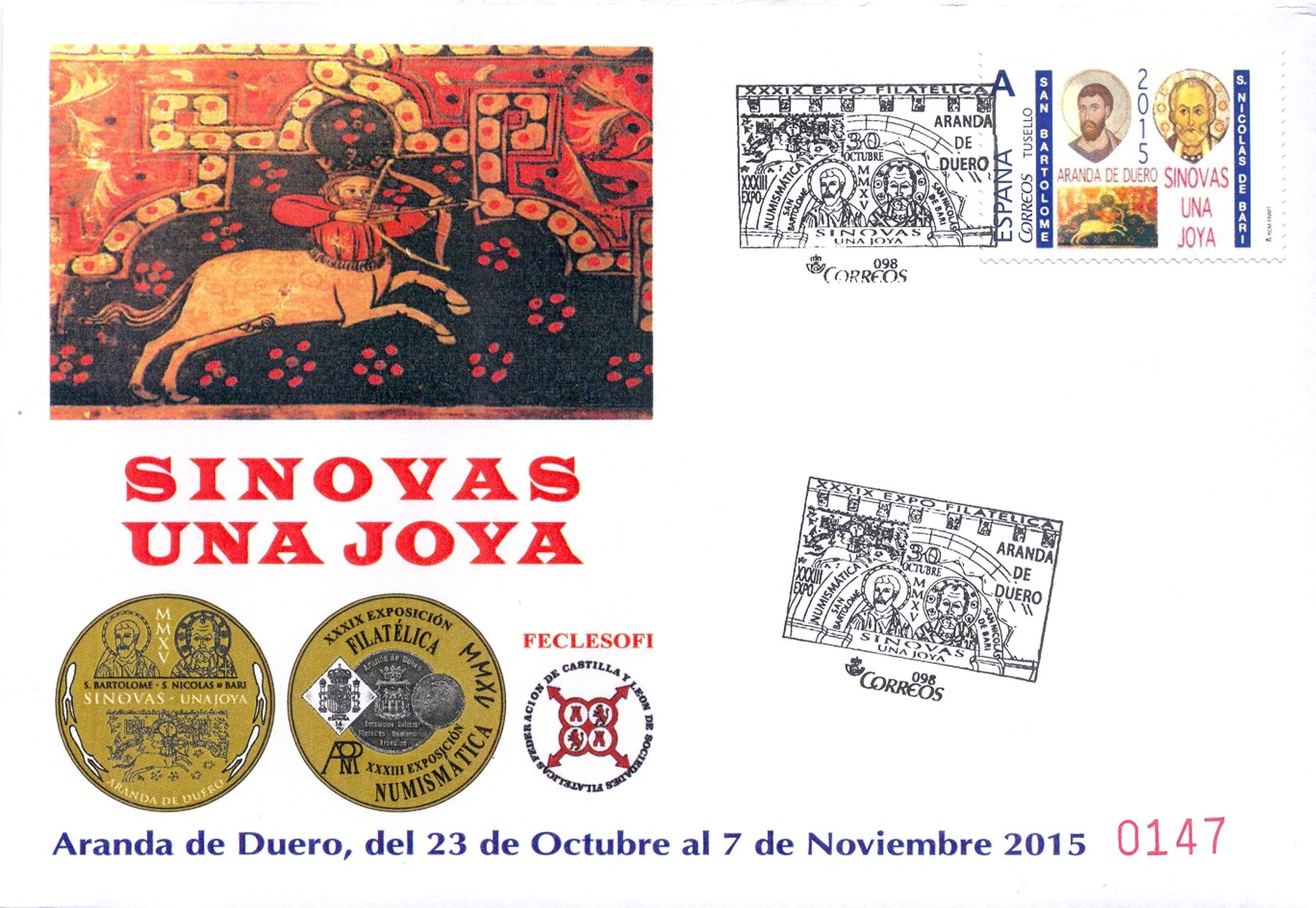 La Asociación Cultural Filatélica Numismática Arandina, con ocasión de la celebración de su XXXIX Exposición Filatélica y XXXIII Exposición Numismática, dedicadas a "Sinovas una joya" que se ha celebrado en Aranda del Duero del 23 de octubre al 7 de noviembre del año 2015, ha emitido un nuevo sello personalizado "TU SELLO".