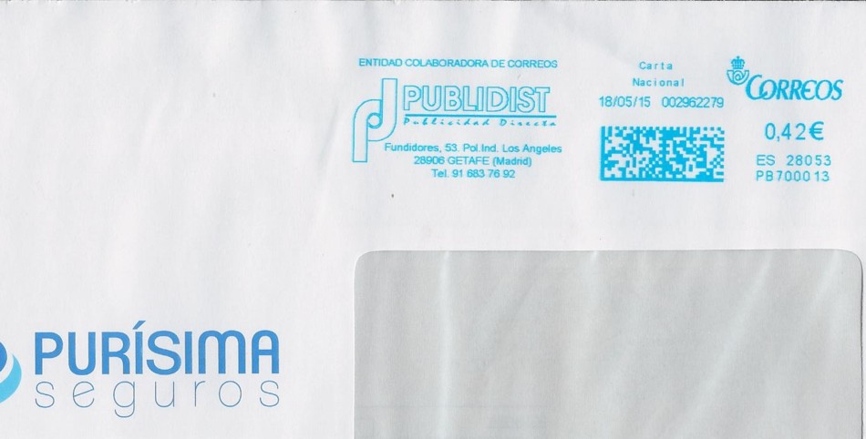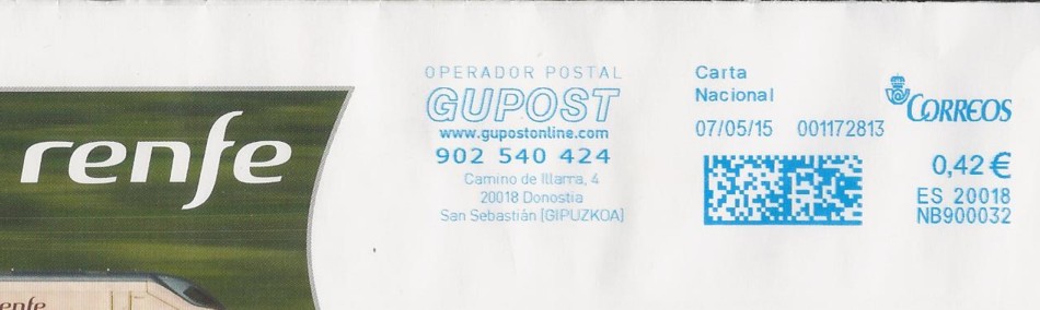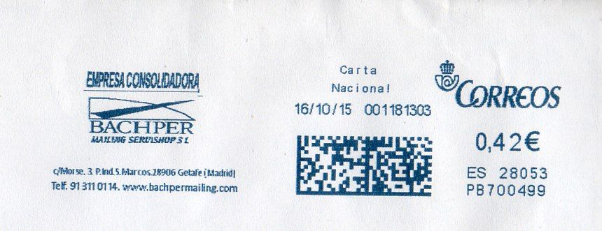 En principio, yo diría que es una de estas 150 franqueadoras si la numeración empieza por NB400 el número es el doscientos y pico, no lleva cartela publicitaria, la fecha del franqueo es posterior a mayo de este año (que es cuando se adjudica el concurso) y el número secuencial del franqueo es bajo. A ver si podemos acotar las números de matrícula de las mismas ya que es de suponer que serán seguidos.