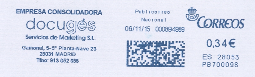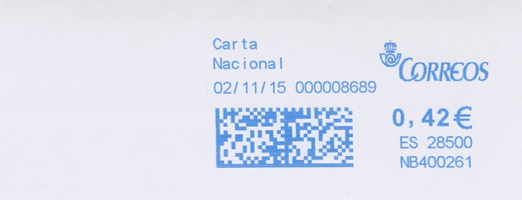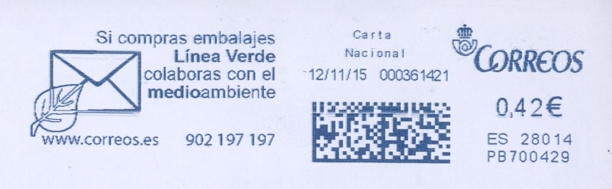 Este creo que no está catalogado.PB700689 / CIBELES MAILING / 18/11/15. Nº de contador bajo.