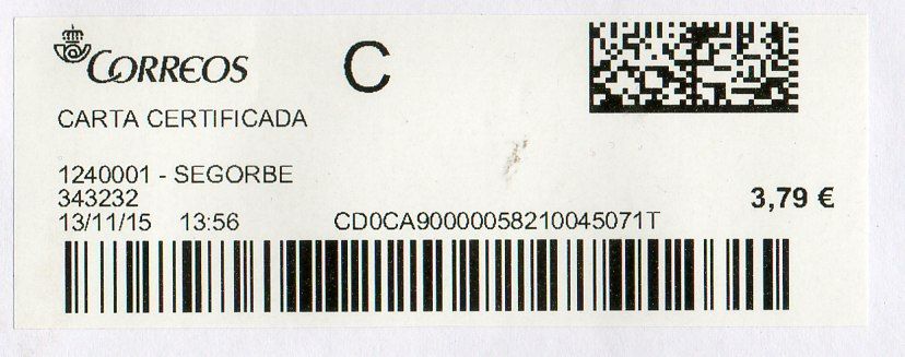 1240001-SEGORBE / CARTA CERTIFICADA / 13/11/15