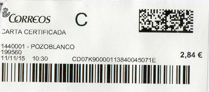 1440001-POZOBLANCO / CARTA CERTIFICADA / 11/11/15