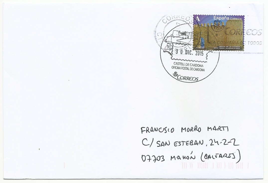 Subo impronta del matasellos de Vilafranca del Penedés por aquello de que es posible sea primera fecha de uso 18/12/2015. La vi en una página de redes sociales y por el momento no se nada más.