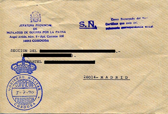 CÓRDOBA - Gobierno Militar / Jefatura Provincial de Mutilados de Guerra por la Patria - 1990