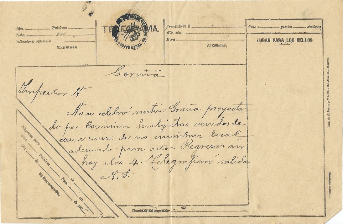 Los telegramas con franquicia, podían expedirse, bien en el impreso oficial o bien en una cuartilla propia. Este impreso, indeleblemente debía llevar el” transmítase” junto con la firma y sello de la autoridad expedidora.
