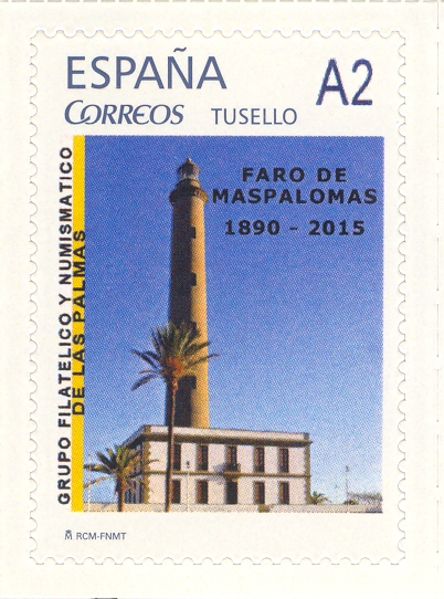Reproduzco en este mensaje el sello personalizado (TU SELLO) emitido en Las Palmas de Gran Canaria, por el Grupo Filatélico y Numismático de Las Palmas para conmemorar el 125 aniversario del Faro de Maspalomas.