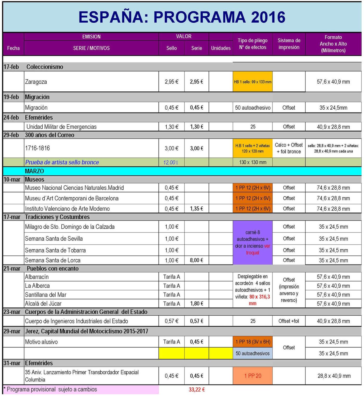 Re: EMISIONES ESPAÑA Y ANDORRA ESPAÑOLA 2016