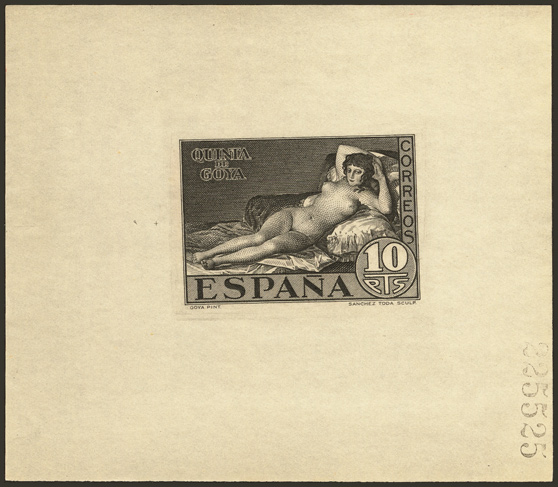 Una prueba filatélica de La maja vestida que no llegó a circular