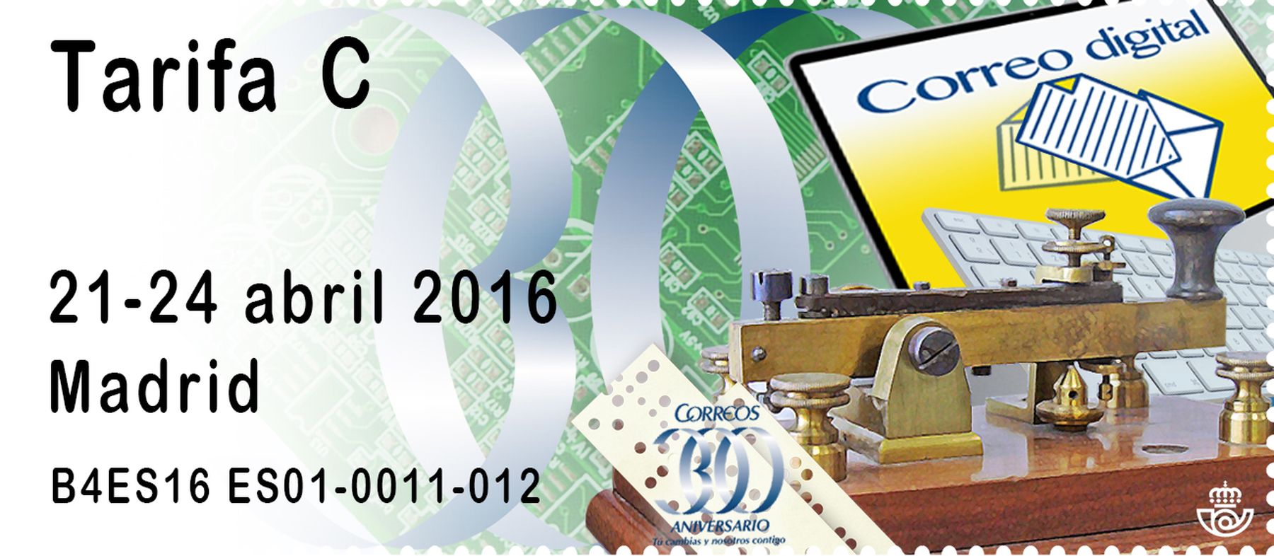- 300 Aniversario Correos: Modelo Telégrafo y Modelo Buzón. Emisión en feria días 23 y 24 Abril ambos modelos. Autoservicio.