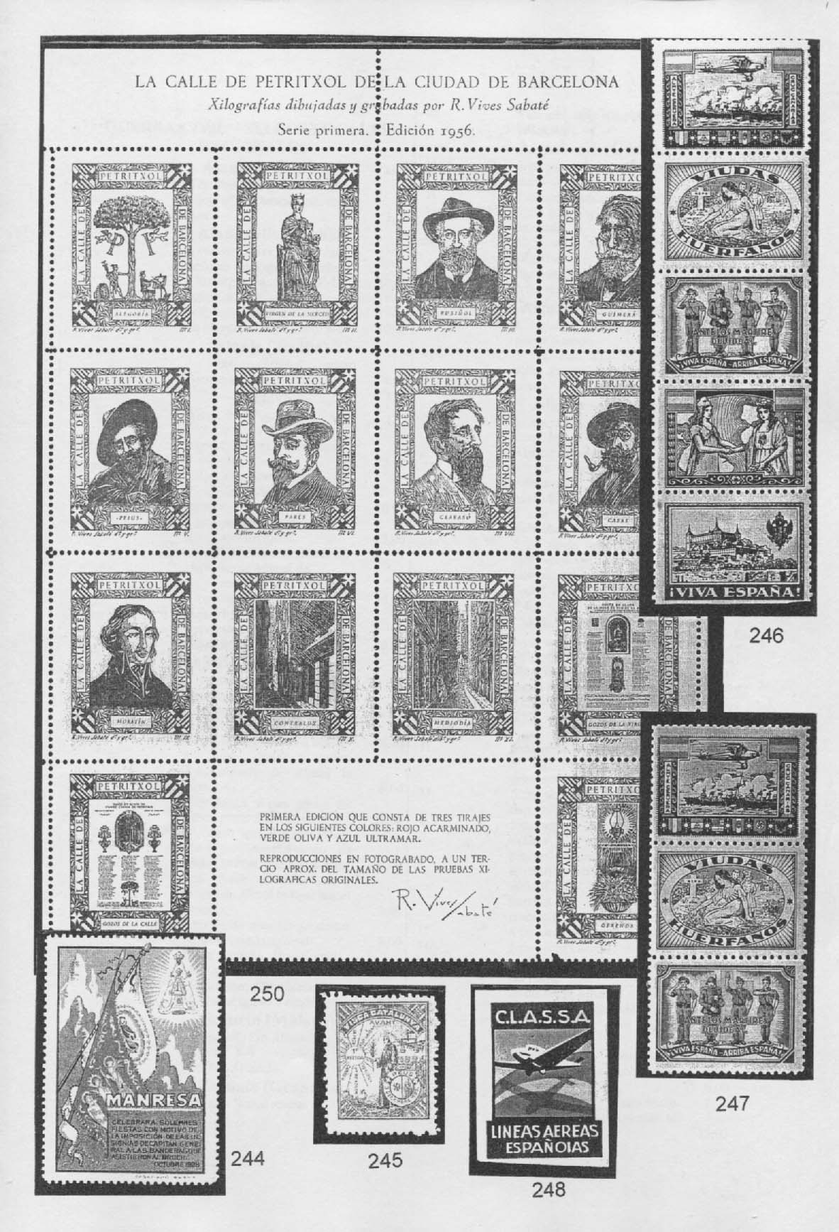 Así las cosas, no es de extrañar que, desde por lo menos 1956 encontremos viñetas dedicadas a esta calle. La hoja de 14 viñetas que muestra el compañero Reigminor, la conozco en los tres colores que meciona Josep