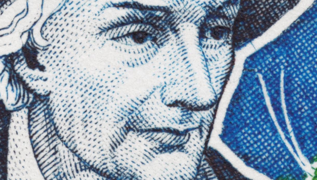 En 1949, se imprime este gran sello en una Alemana devastada. No sabemos el nombre del grabador, sólo tenemos su obra. El buril endurece y realza el trazo delicado y fino de Jagemann: