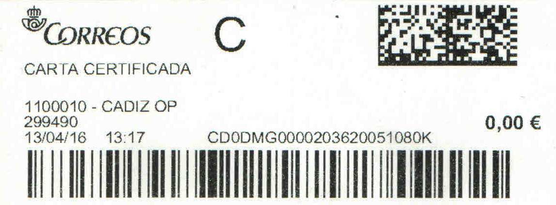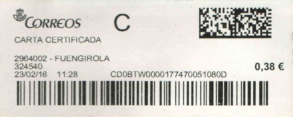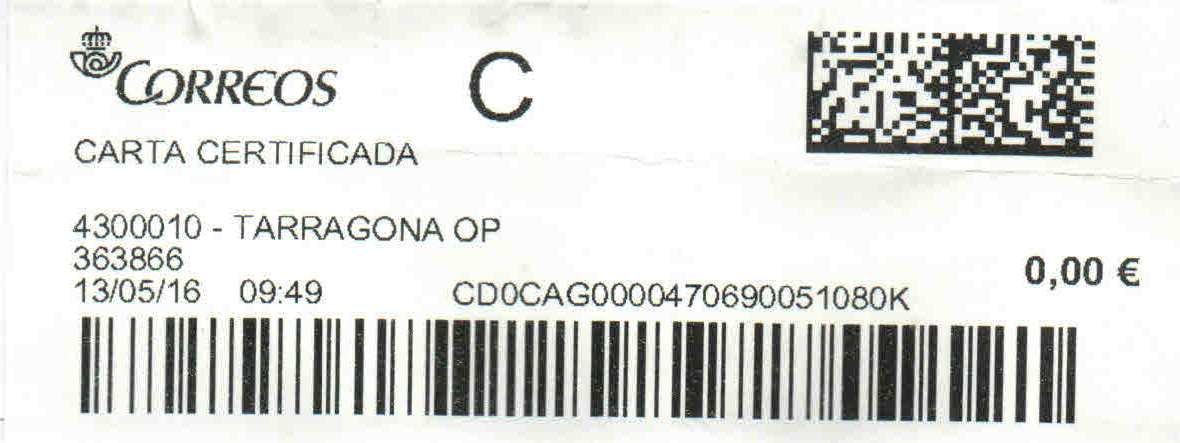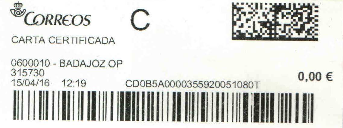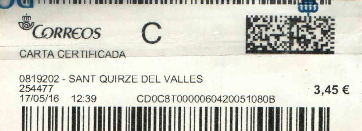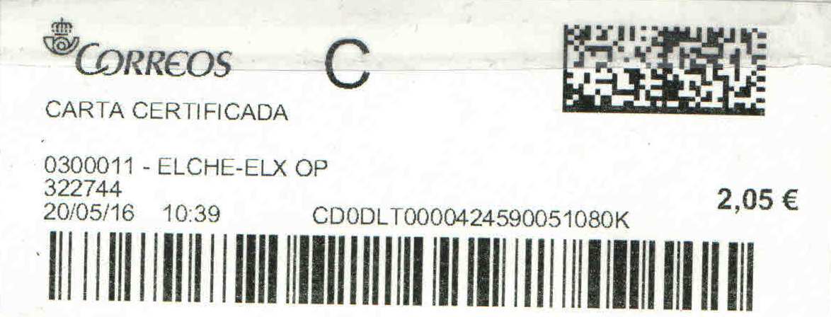 3019094-MURCIA SUC 1 / CARTA CERTIFICADA URGENTE / 24-05-16.