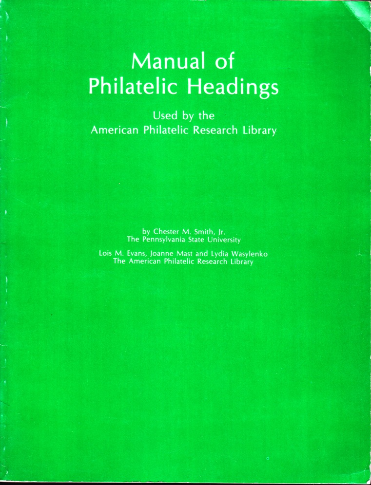 MANUAL OF PHILATELIC HEADINGS - USED BY THE AMERICAN PHILATELIC RESEARCH LIBRARY