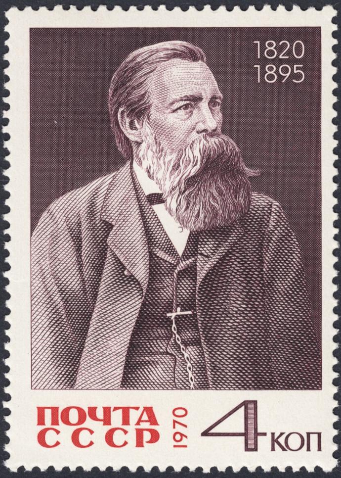 Cuando Jorgesurcl me descubrió días atrás que el retrato de Ivan Turgueniev era obra de Lidiya Fedorovna Majorova, enseguida intuí que también lo sería este sello de Friedrich Engels que guardaba yo. Lo he escaneado, lo he comprobado, y así es. ¿Qué os parece ese ojal, eh? Obra maestra del grabado de esta artista de la que habremos de buscar más cosas. Y es muy sintomático: el compañero de serie de este sello, uno similar dedicado a Marx, ya no es tan majestuoso como este. ¿Por qué? ¡Es de otro artista, pero no de Majorova! Ni siquiera sujeto a las normas más laminadoras de la personalidad, un artista desaparece de su obra.